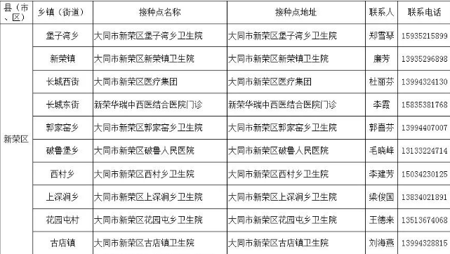 大同市新榮區(qū)新冠病毒疫苗接種點信息
