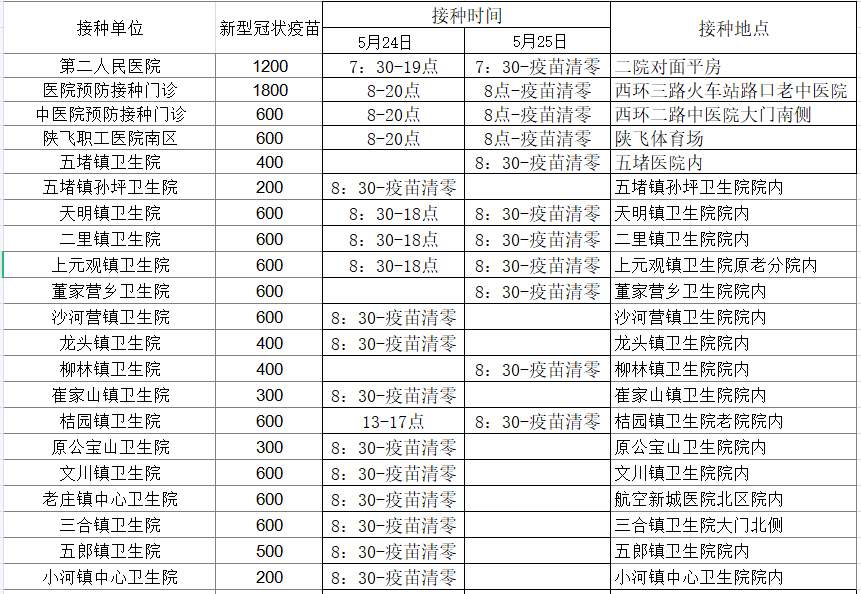 接種地點:漢中市城固縣博望街道辦事處西一路61號;