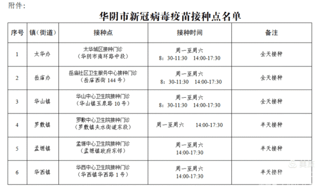 渭南市華陰市新冠病毒疫苗接種點(diǎn)信息