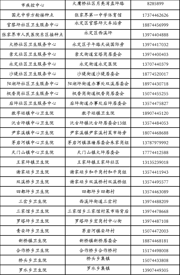 張家界市永定區(qū)新冠病毒疫苗接種點(diǎn)信息