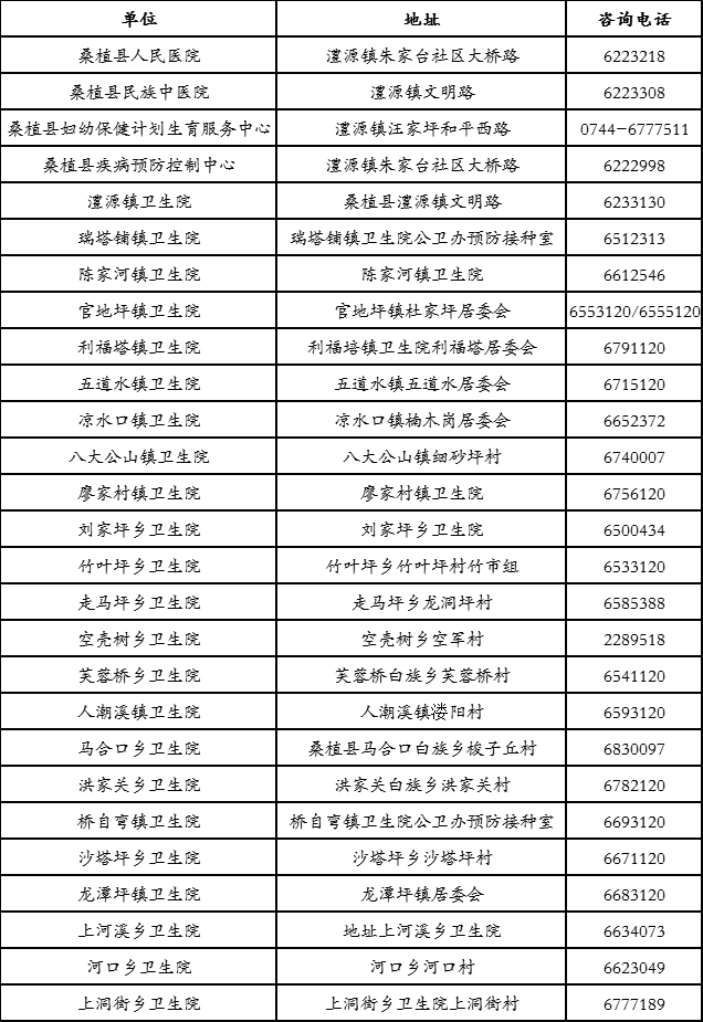 張家界市桑植縣新冠病毒疫苗接種點信息