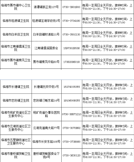 岳陽(yáng)市臨湘市新冠病毒疫苗接種點(diǎn)信息