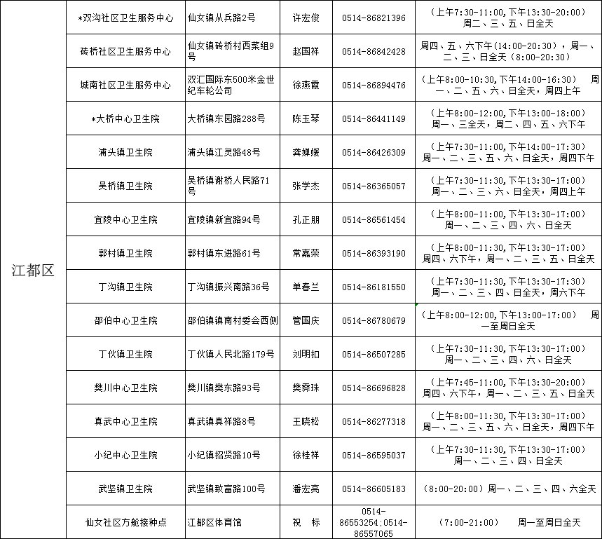 揚(yáng)州市江都區(qū)新冠病毒疫苗接種點(diǎn)信息