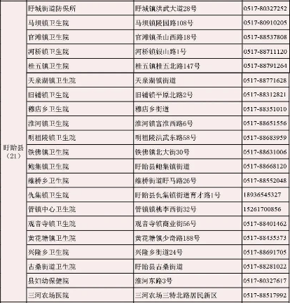 淮安市盱眙縣新冠病毒疫苗接種點(diǎn)信息