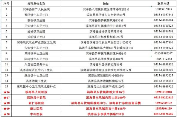 鹽城市濱??h新冠病毒疫苗接種點(diǎn)信息