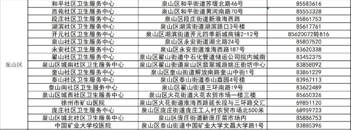 徐州市泉山區(qū)新冠病毒疫苗接種點(diǎn)信息
