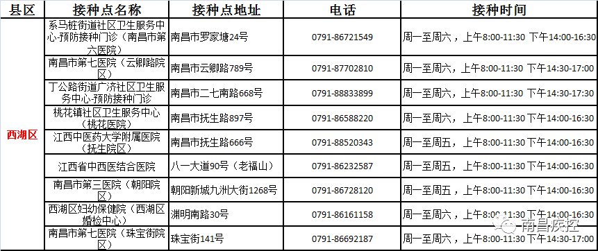 南昌市西湖區(qū)新冠病毒疫苗接種點(diǎn)信息