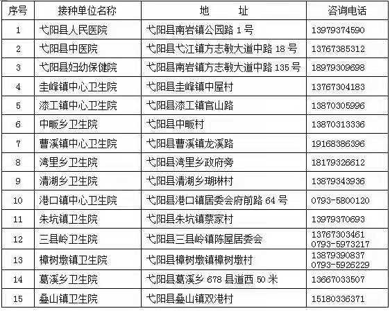 接種地點(diǎn):江西省上饒市弋陽(yáng)縣南巖鎮(zhèn)公園路1號(hào),
