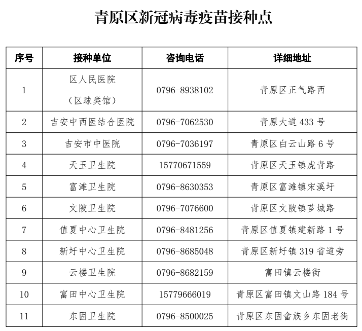 吉安市青原區(qū)新冠病毒疫苗接種點(diǎn)信息