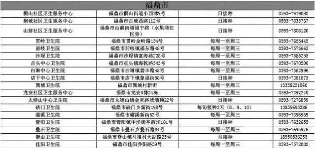 福鼎市新冠病毒疫苗接種點(diǎn)信息