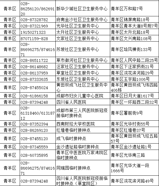 成都市青羊區(qū)新冠病毒疫苗接種點信息