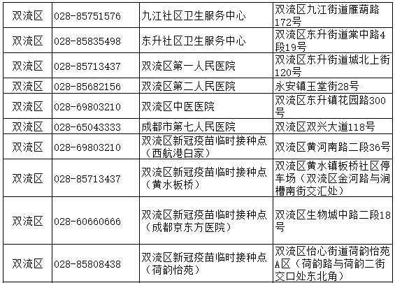 成都市雙流區(qū)新冠病毒疫苗接種點(diǎn)信息