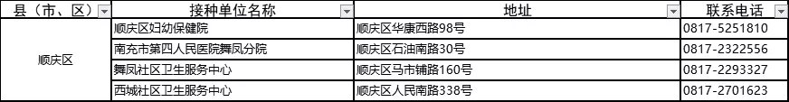 接種地點(diǎn):四川省南充市高坪區(qū)小龍街道辦事處民德路54號(hào)