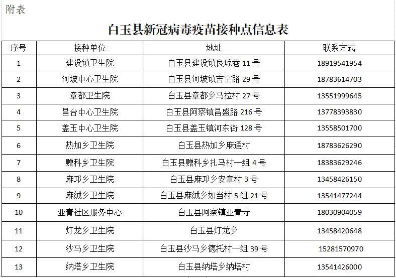 甘孜州白玉縣新冠病毒疫苗接種點信息