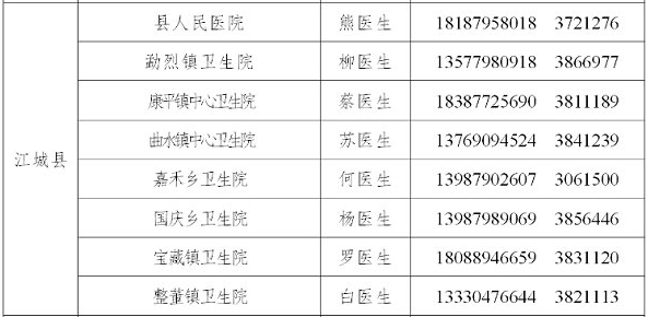 江城縣人民醫(yī)院接種點 熊濤麗18187958018