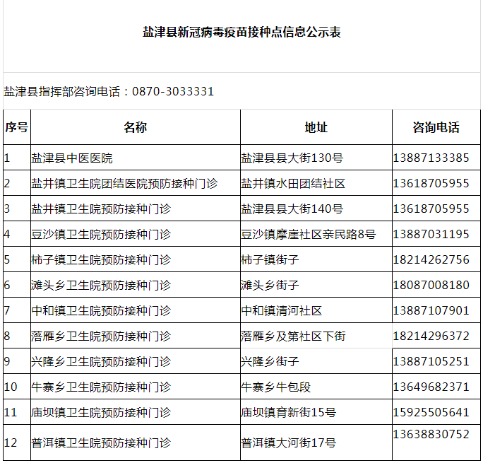 鹽津縣新冠病毒疫苗接種點及預約咨詢電話