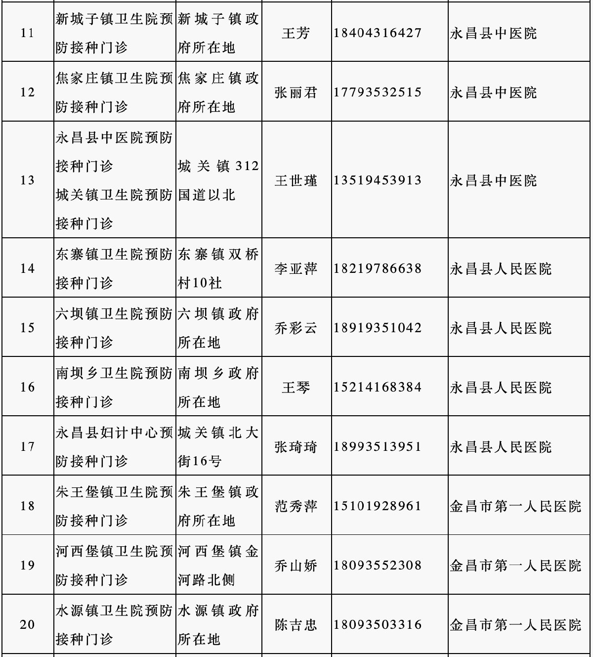 13、永昌縣人民醫(yī)院預(yù)防接種門診