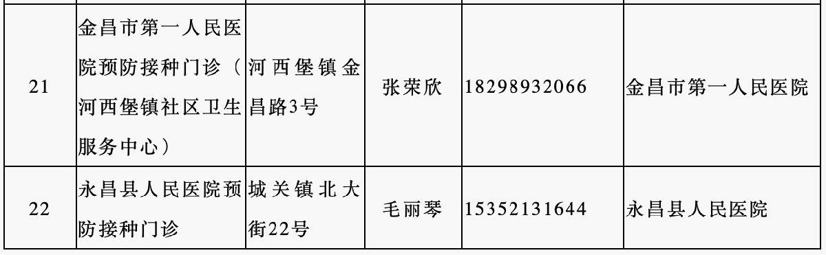 接種地點:甘肅省金昌市永昌縣河西堡鎮(zhèn)金昌路3號