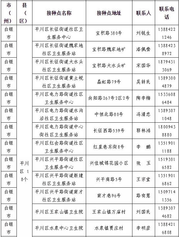白銀市平川區(qū)新冠病毒疫苗接種點(diǎn)及預(yù)約咨詢電話
