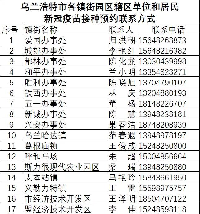 即日起,興安盟烏蘭浩特市內(nèi)18歲以上居民(含60歲以上)不論戶籍,身體狀況符合接種要求的均需免費(fèi)接種新冠病毒疫苗,請(qǐng)您與所在單位或社區(qū)聯(lián)系疫苗接種相關(guān)事宜。零散居民、流動(dòng)人口也可攜帶身份證,就近自行前往接種點(diǎn)接種,接種點(diǎn)會(huì)根據(jù)疫苗供應(yīng)情況、日接種能力、排隊(duì)順序等發(fā)放接種序號(hào)。注意;接種點(diǎn)開放時(shí)間不定時(shí)有調(diào)整,建議先電話或者網(wǎng)上預(yù)約咨詢,烏蘭浩特市新冠病毒疫苗接種單位名單、地址、接種時(shí)間和預(yù)約電話等相關(guān)信息請(qǐng)看這里↓↓↓