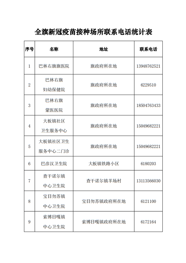 巴林右旗新冠病毒疫苗接種點(diǎn)及預(yù)約咨詢電話