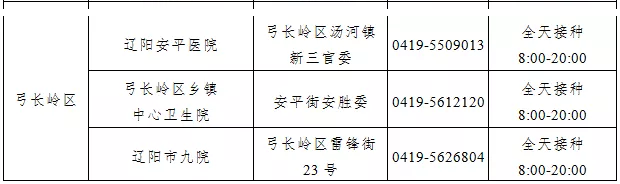 接種地點(diǎn):遼寧省遼陽市弓長嶺區(qū)繁榮街31號