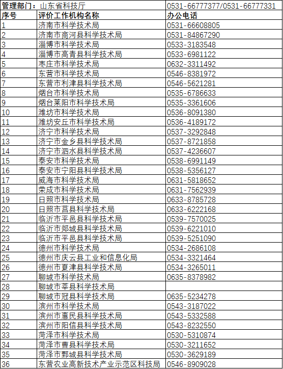 管理部門:山東省科學技術廳:0531-66777377;0531-66777331