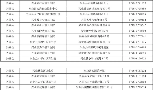 接種地點:廣西壯族自治區(qū)玉林市興業(yè)縣石南鎮(zhèn)玉貴路671號;
