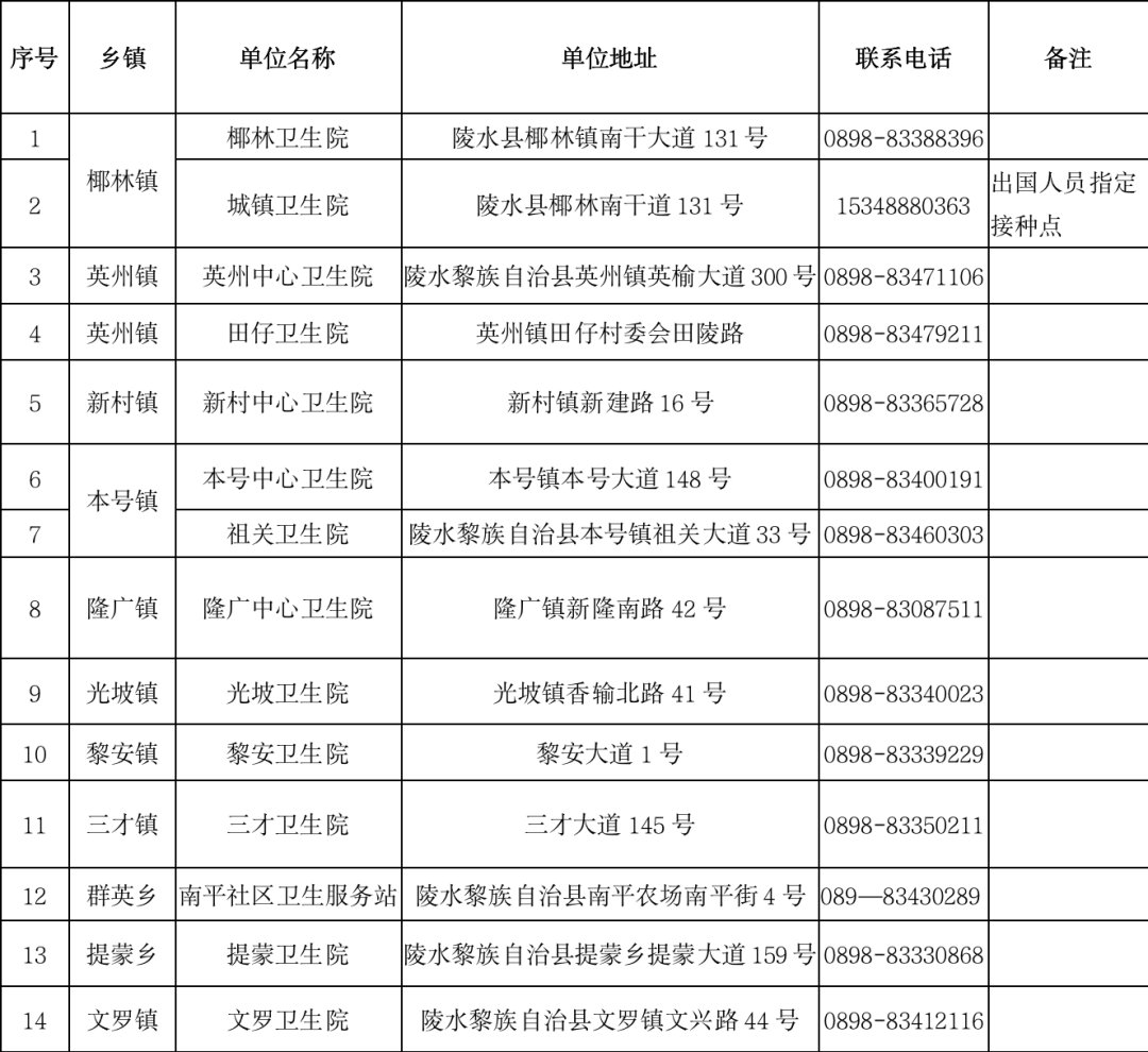 接種地點(diǎn):海南省陵水縣本號(hào)鎮(zhèn)祖關(guān)大道33號(hào)