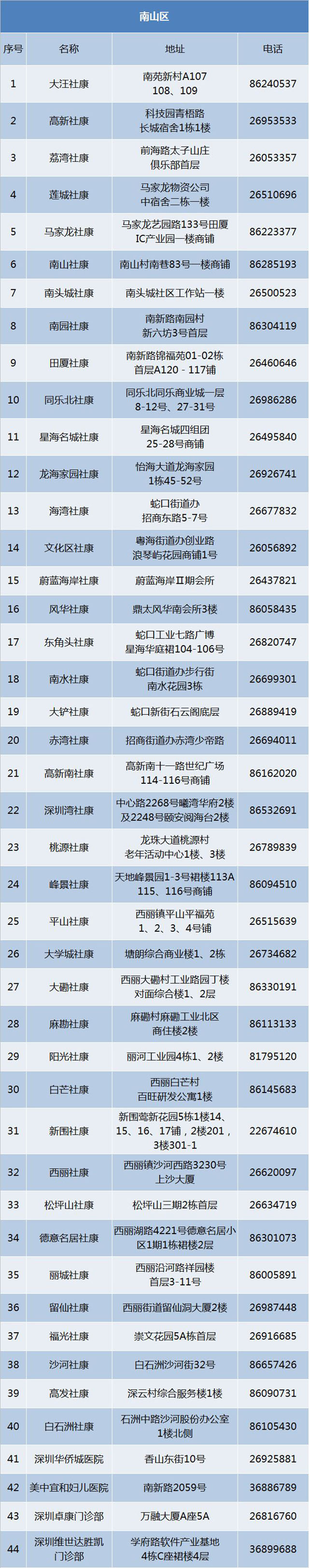 47、深圳市蛇口人民醫(yī)院高新南社區(qū)健康服務中心