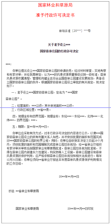 根據(jù)《國(guó)家級(jí)森林公園設(shè)立、撤銷(xiāo)、合并、改變經(jīng)營(yíng)范圍或者變更隸屬關(guān)系審批管理辦法》的有關(guān)規(guī)定,對(duì)材料進(jìn)行實(shí)質(zhì)性審查,作出許可決定。