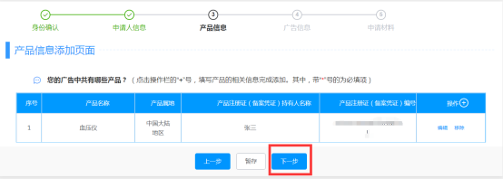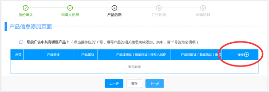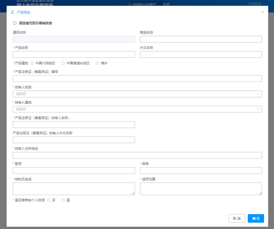 4) 點(diǎn)擊操作+ 號(hào)后的頁面,填寫醫(yī)療器械信息。