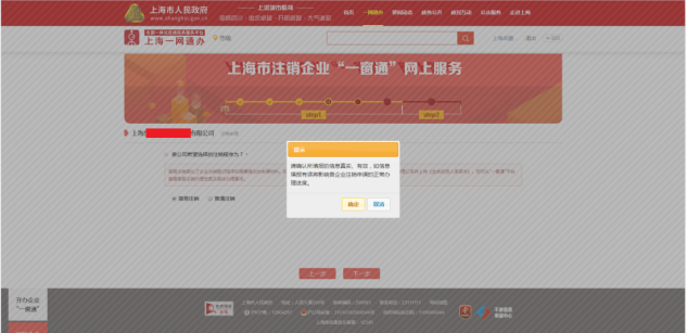 1.選擇簡(jiǎn)易注銷后,填寫相關(guān)企業(yè)信息,并按照提示點(diǎn)擊“確定”后進(jìn)入注銷平臺(tái)辦理跟蹤頁(yè)面。