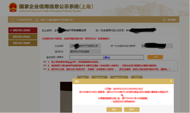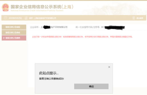 5.點(diǎn)擊“確認(rèn)”完成簡(jiǎn)易注銷公告提交。