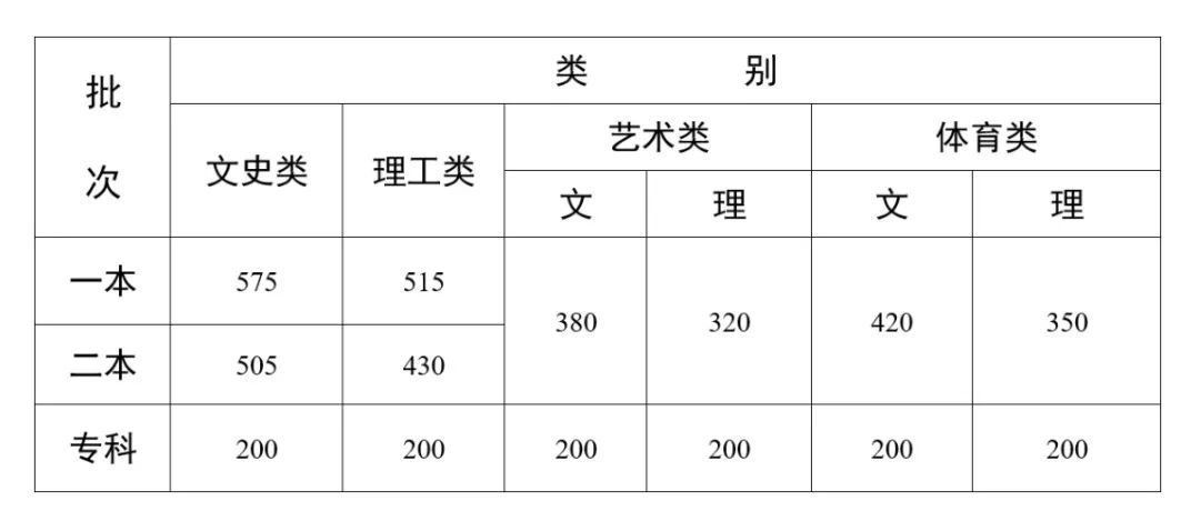 第二批本科文史類425分,理工類350分