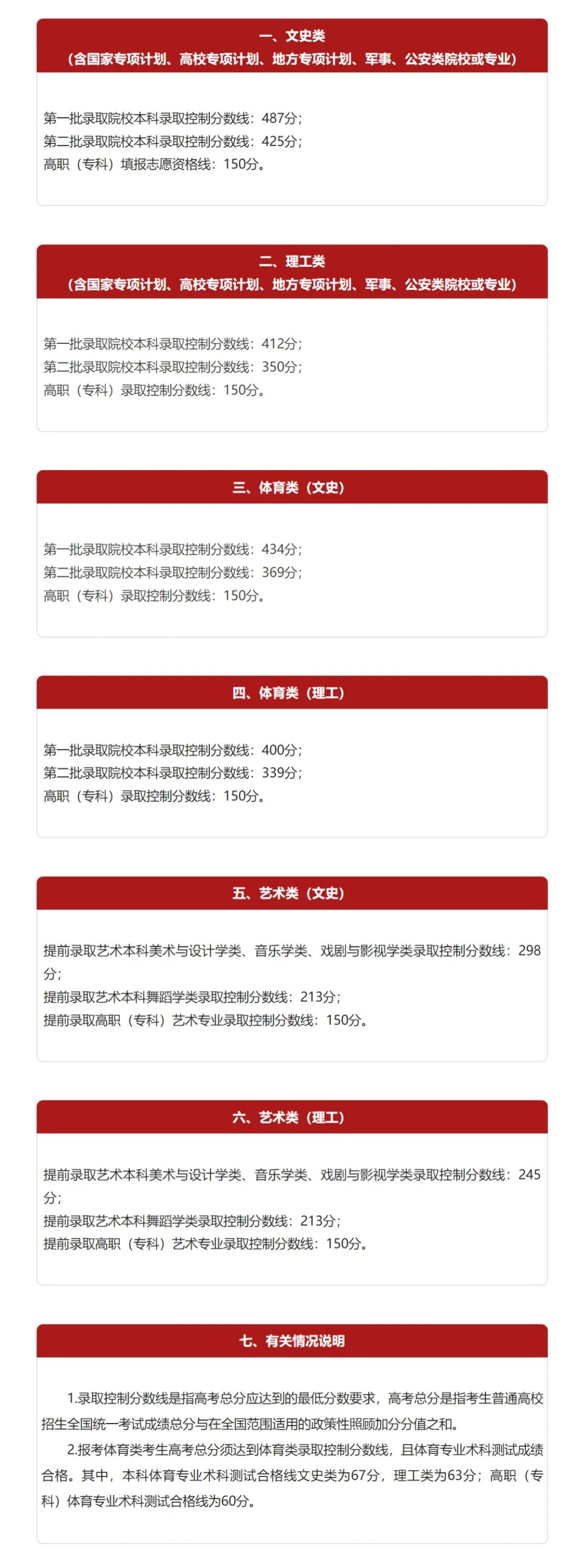 第一批本科文史類487分,理工類412分