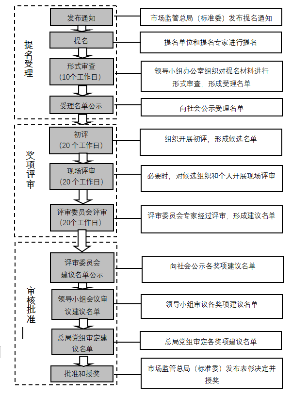 提名單位還應(yīng)當(dāng)在本單位對符合條件的標(biāo)準(zhǔn)項目、組織和個人進(jìn)行公示,公示時間不少于5個工作日。