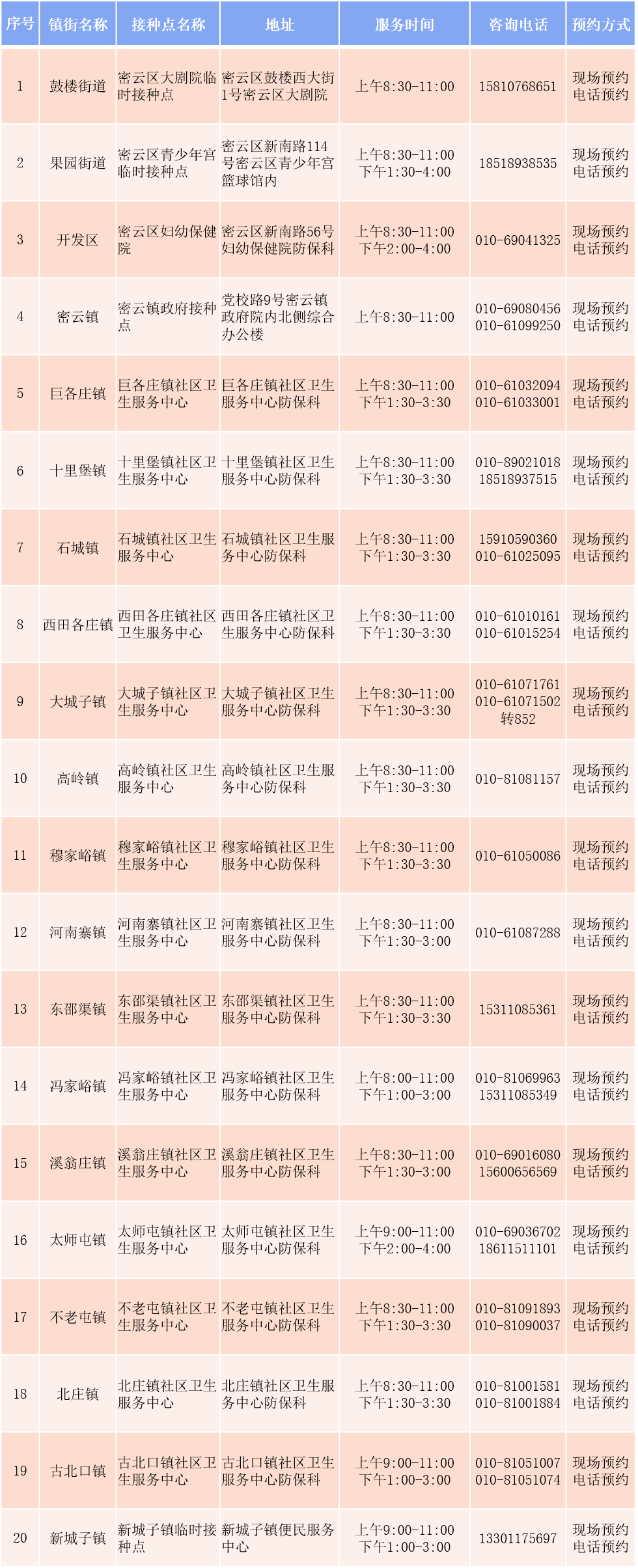 密云區(qū)新冠疫苗接種點(diǎn)信息公示(2022年6月17日生效)