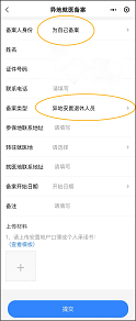 第三步:選擇為自己備案或(代辦)為他人備案,填寫異地就醫(yī)備案需要的頁面數(shù)據(jù),備案類型選擇“異地安置退休人員”,完成后點擊提交信息,粵醫(yī)保通過接口獲取提交成功的狀態(tài)并在前端頁面進行展示。