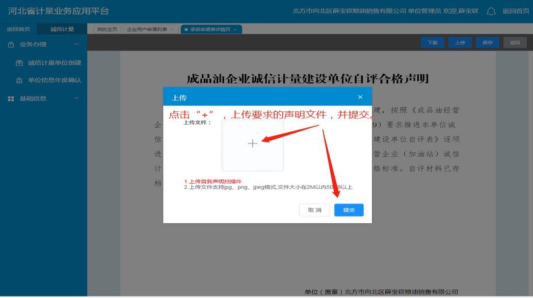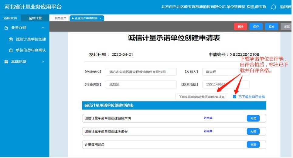 承諾書的操作參照誠信計(jì)量承諾單位創(chuàng)建自我聲明。