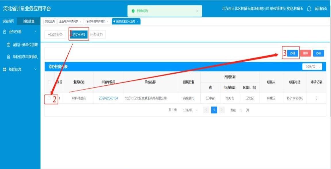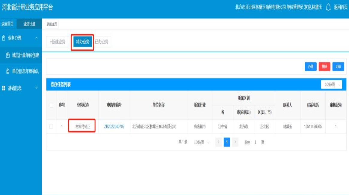 進(jìn)入模塊后,頁面左側(cè)“業(yè)務(wù)辦理”菜單中的“誠信計(jì)量單位創(chuàng)建”子菜單,進(jìn)入業(yè)務(wù)處理界面。