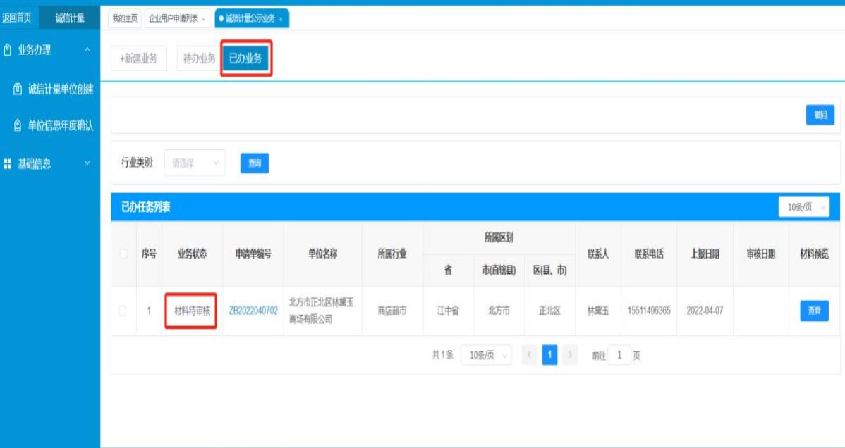 已辦業(yè)務(wù)中顯示已提交材料待審核或已審核通過公示的業(yè)務(wù)。已提交待審核的申請(qǐng),未審核之前發(fā)現(xiàn)存在問題可以撤回,撤回后進(jìn) 入待辦業(yè)務(wù)列表,重新修改后,再提交。