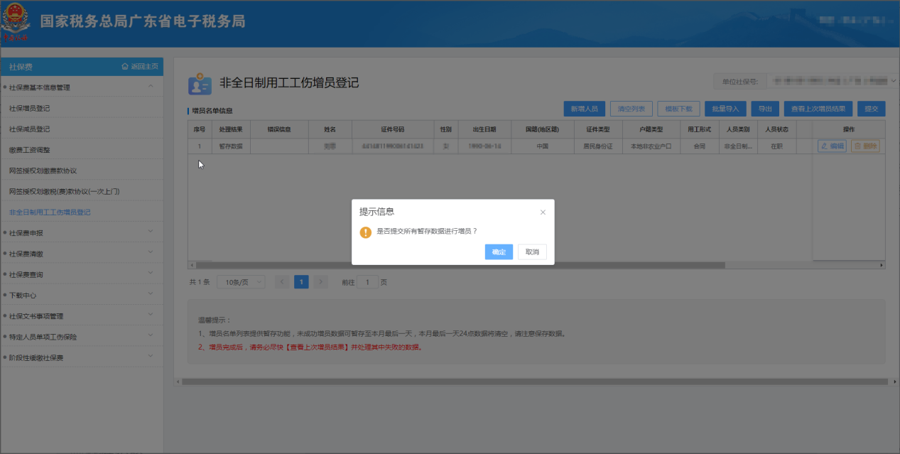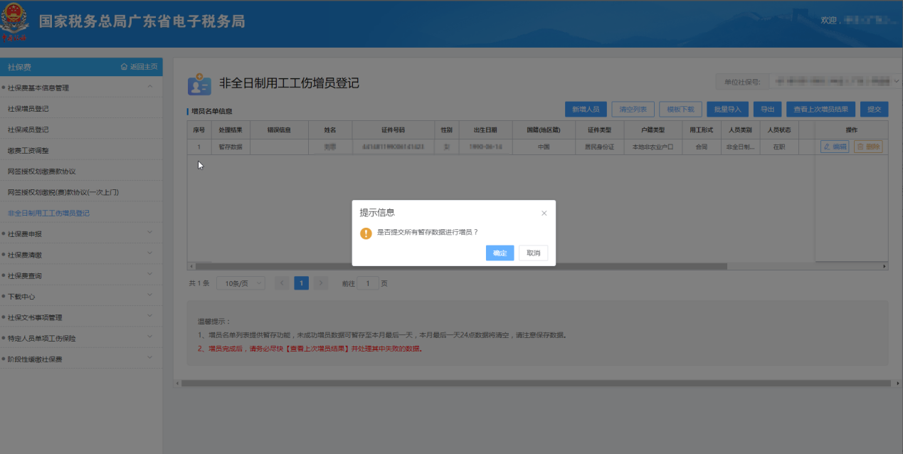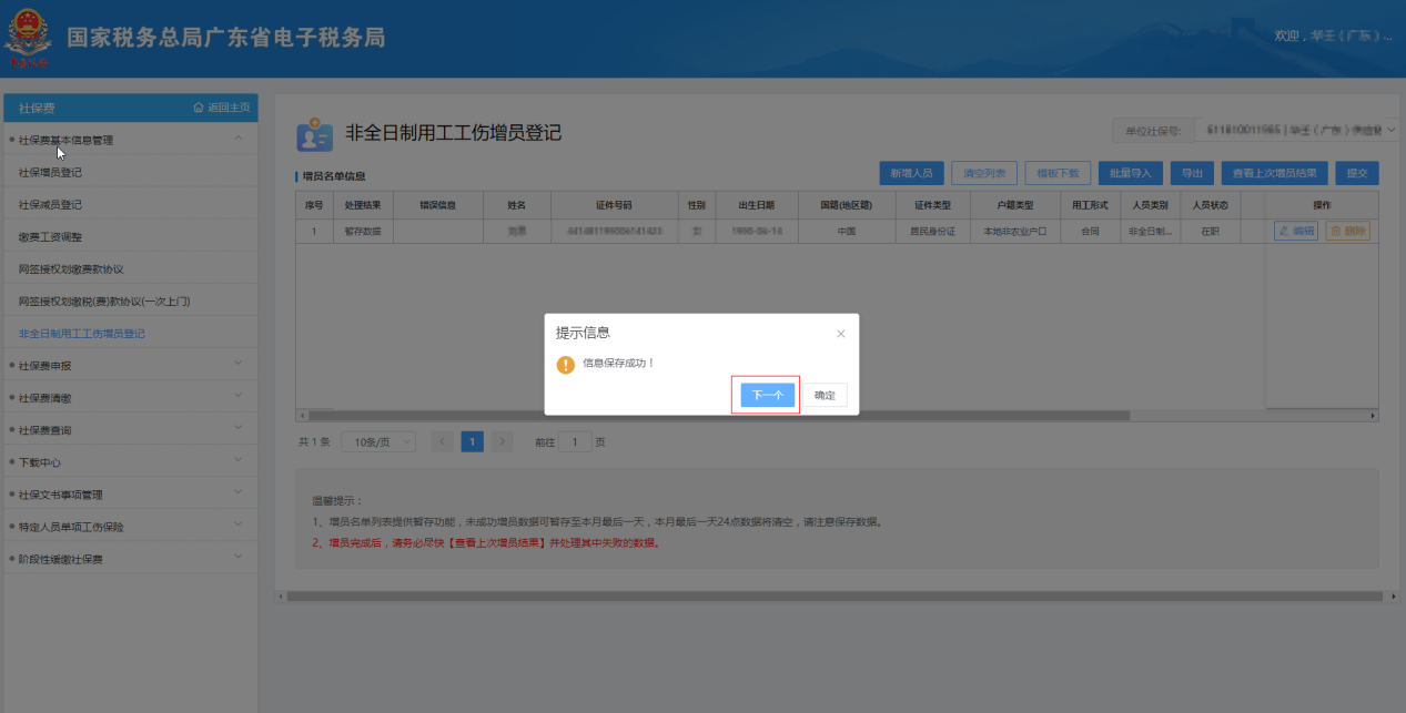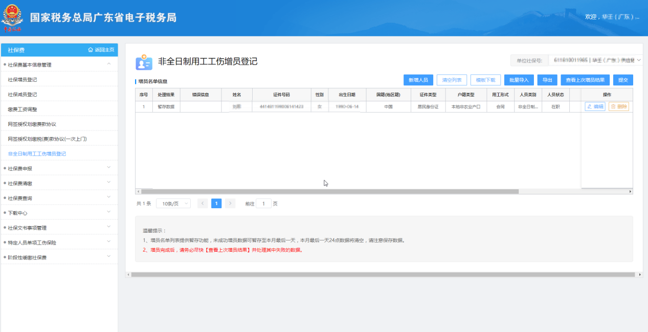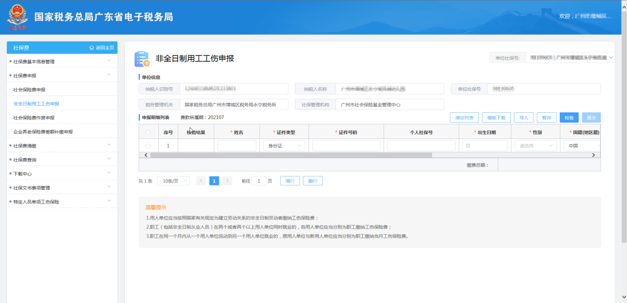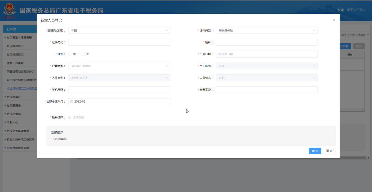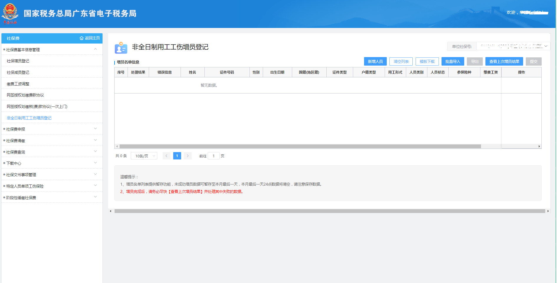 廣東省電子稅務(wù)局社保費(fèi)網(wǎng)報(bào)系統(tǒng)非全日制用工工傷增員登記操作指南