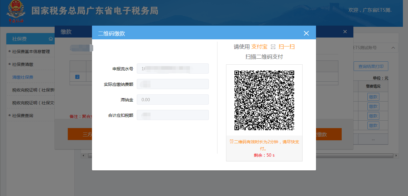 點擊【支付寶繳款】彈出“二維碼繳款”頁面,確認繳款信息無誤后,使用支付寶【掃一掃】二維碼支付。