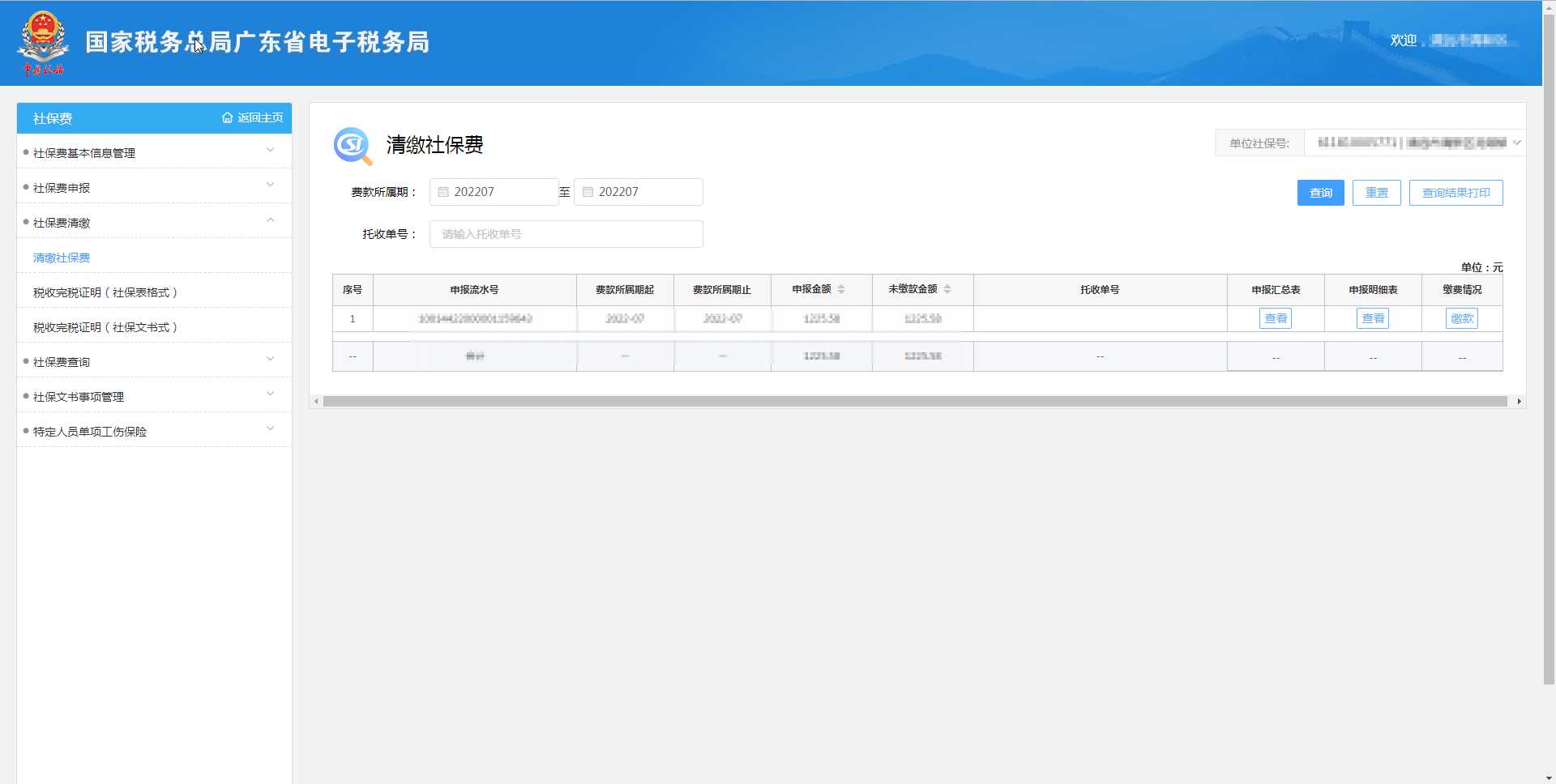 【查詢條件】:輸入需要查詢的“費款所屬期”