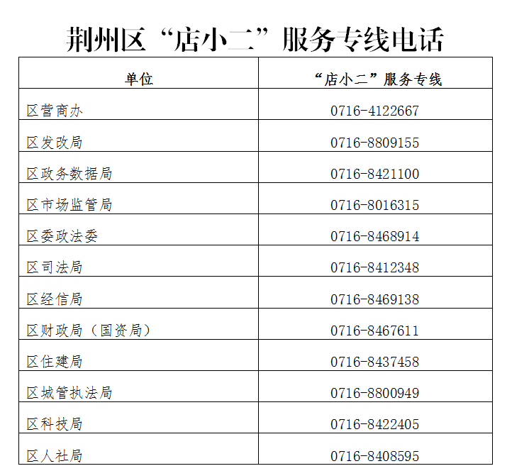 為進一步踐行“有呼必應(yīng)、無事不擾”的“店小二”精神,暢通企業(yè)群眾訴求表達渠道,提升企業(yè)群眾滿意度和獲得感,荊州區(qū)各單位設(shè)立本部門“店小二”專線,實現(xiàn)一個號碼統(tǒng)一對外為企業(yè)群眾提供服務(wù),確保企業(yè)群眾咨詢與訴求問題得到高效辦理,打造便捷、高效、規(guī)范、精準的企業(yè)群眾服務(wù)“總客服”?,F(xiàn)將荊州區(qū)“店小二”專線電話予以公布,企業(yè)群眾可在工作日上班時間撥打?qū)>€電話進行政策咨詢或提出意見建議。