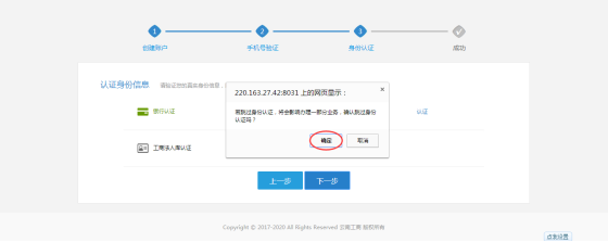 若確認跳過身份認證,則點擊【確定】按鈕,否則點擊【取消】按鈕。