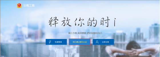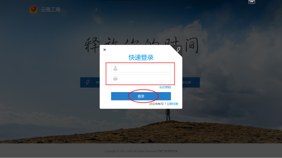注冊完畢后,回到云南工商登錄頁面,點擊【快速登錄】按鈕,輸入“賬號”和“登錄密碼”,如下圖所示。