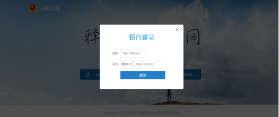 身份認證頁面,若已在云南工商合作銀行辦理過U盾的,則在電腦上插入U盾,并安裝銀行U盾的相關證書,然后點擊【認證】按鈕,系統(tǒng)自動跳轉至銀行認證頁面(以中國工商銀行為例),如下圖。
