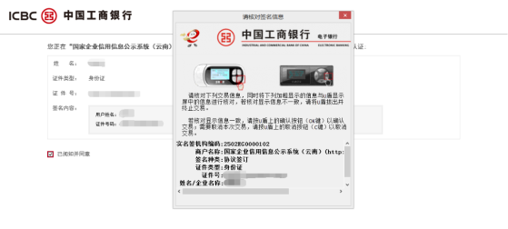 仔細查看身份信息并勾選【已閱知并同意】,然后點擊【確定】按鈕,頁面彈出核對信息界面,如下圖。